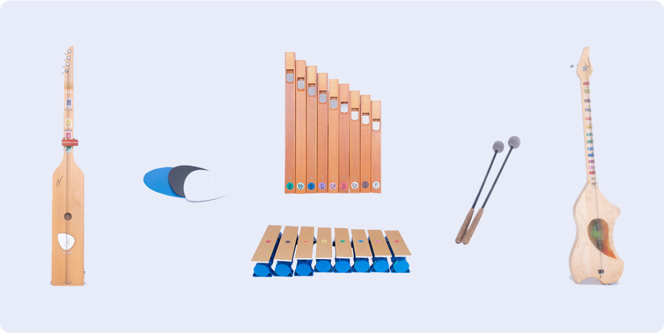 音感やリズム感の基礎を作る手段としてブンネ楽器は有効なツールとなります。チャイムバーを用いて、ベース音をなぞってみたり、スウィングバー・ギターを使って和声感を養うこともできるでしょう。特に未就学児の方などに向けた導入部分の楽器として非常に優れたツールになります。